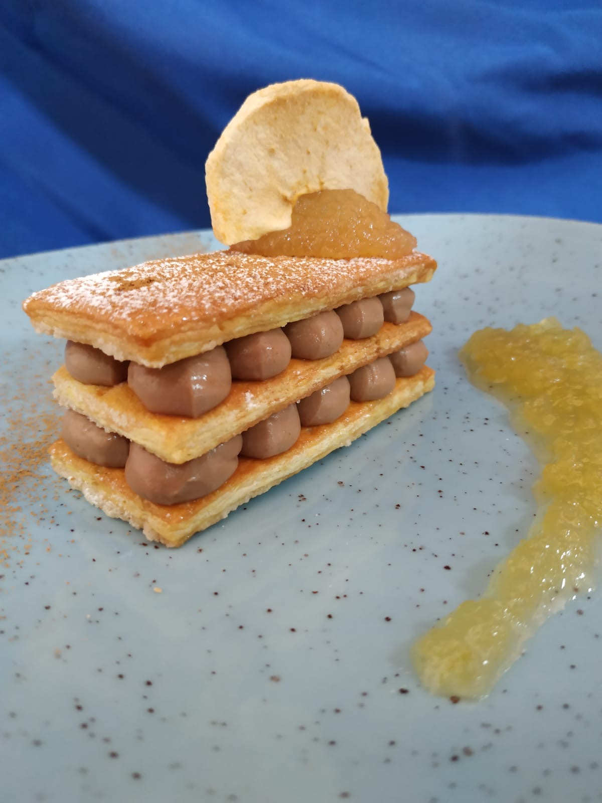 Adelfa Calvo: Hojaldre,Chocolate y Manzana. Hemos combinado el hojaldre con Chocolate con Leche y Compota de Manzana Especiada.