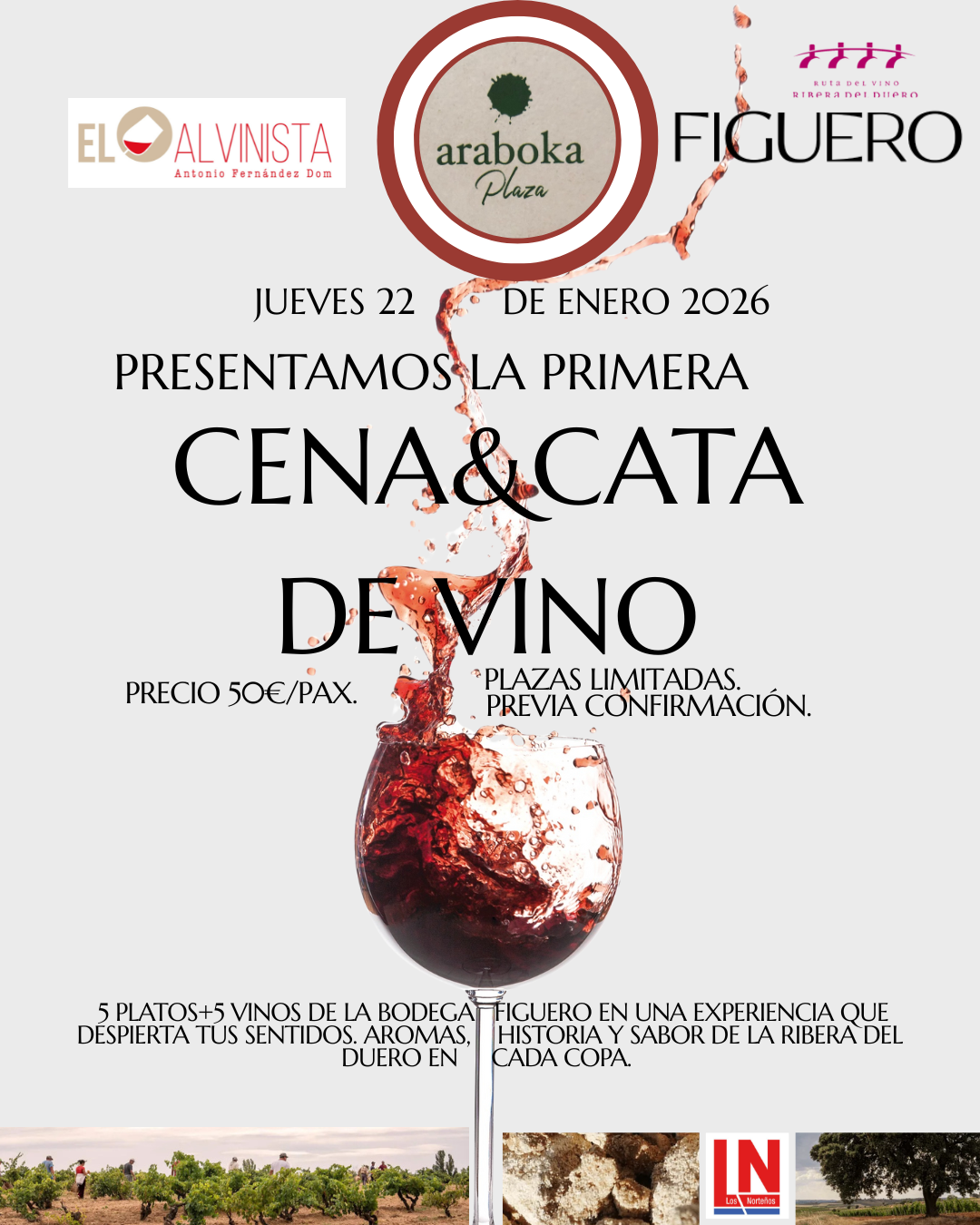 Primera Cata y Cena de 2026 en arabokaPLAZA by Antonio Fernández. Este Jueves 22 de enero de 2026 de 20:00 a 23:00 horas