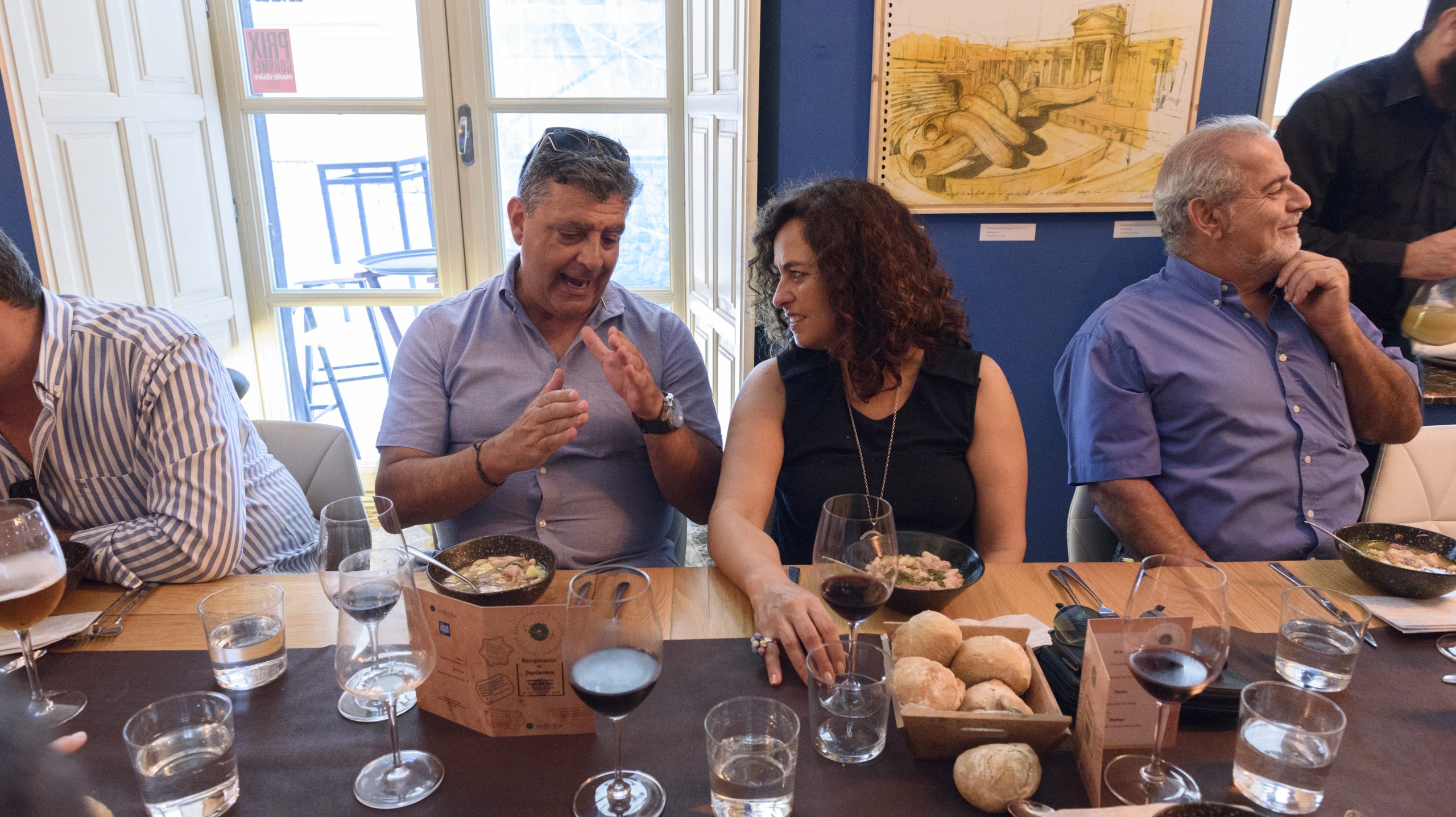 En el interior. Sentados en Salón interior compartimos con nuestra Sociedad Gastronómica y Viajera Araboka Malaga